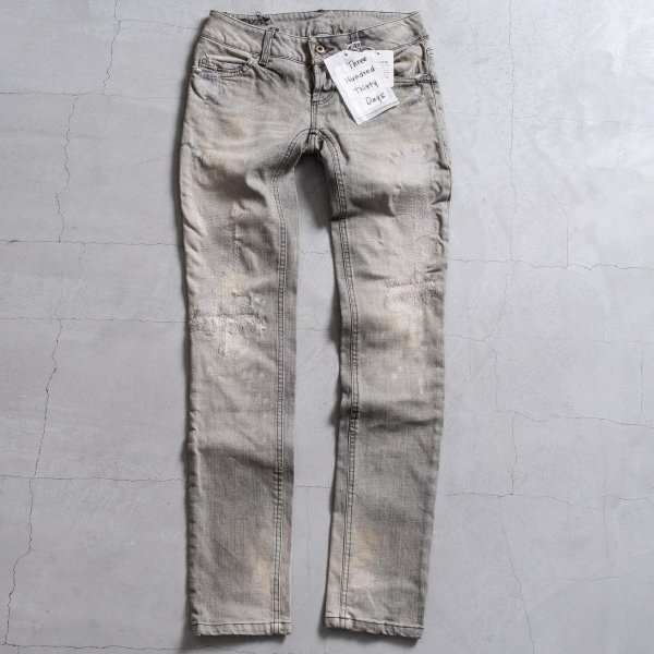 - three Hundred Thirty Days 安室着 スリーハンドレッドサーティデイズ グレー ダメージスキニーデニム デニムパンツ