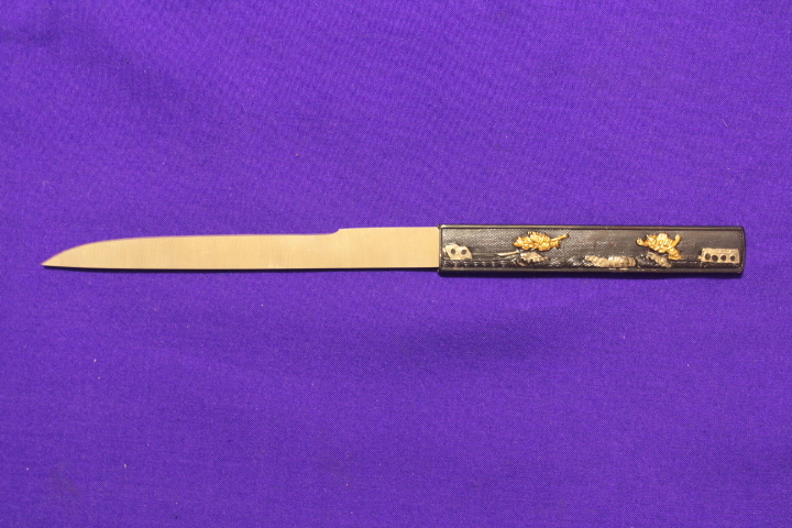 - 小柄『武者』(銅・魚子地)+小刀『長船長光』(刃文・鍛え肌模様入り・裏側のみ)☆リアルな刃文 現代 小柄小刀 模造刀 ☆新品