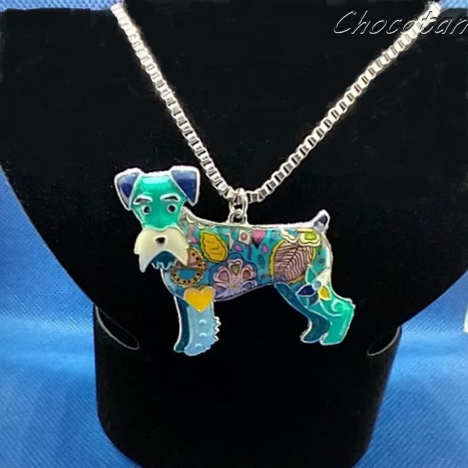 - 【送料無料】シュナウザー A 青 エナメル ネックレス【横向き】【新品】