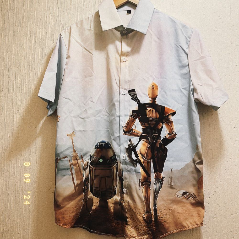 - 新品★スターウォーズ★R2-D2&C-3PO★アロハシャツ★ユニセックス★Lアロハシャツ 半袖シャツ