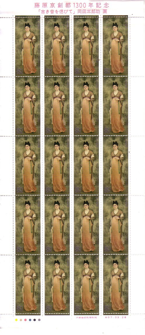 - 「藤原京創都1300年記念 「古き昔を偲びて」岡田三郎助画 」の記念切手です