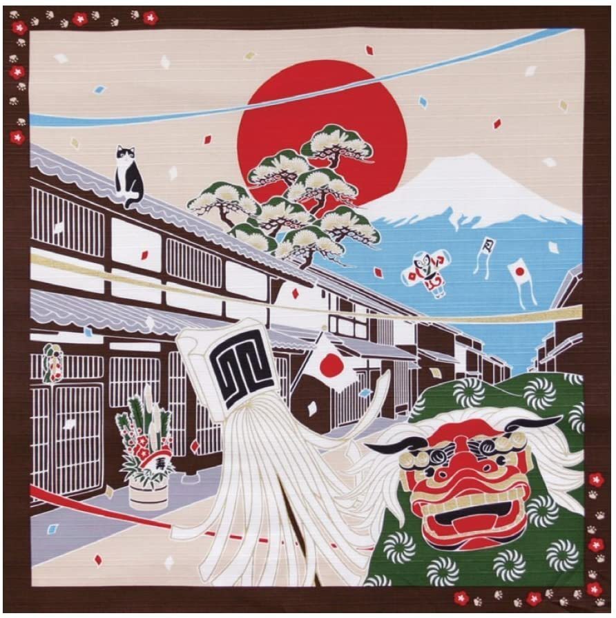 - 小風呂敷 ふろしき おしゃれ 50x50cm たまのお散歩 お正月 1月 猫 タペストリー 日本製 ネコポス ポイント消化