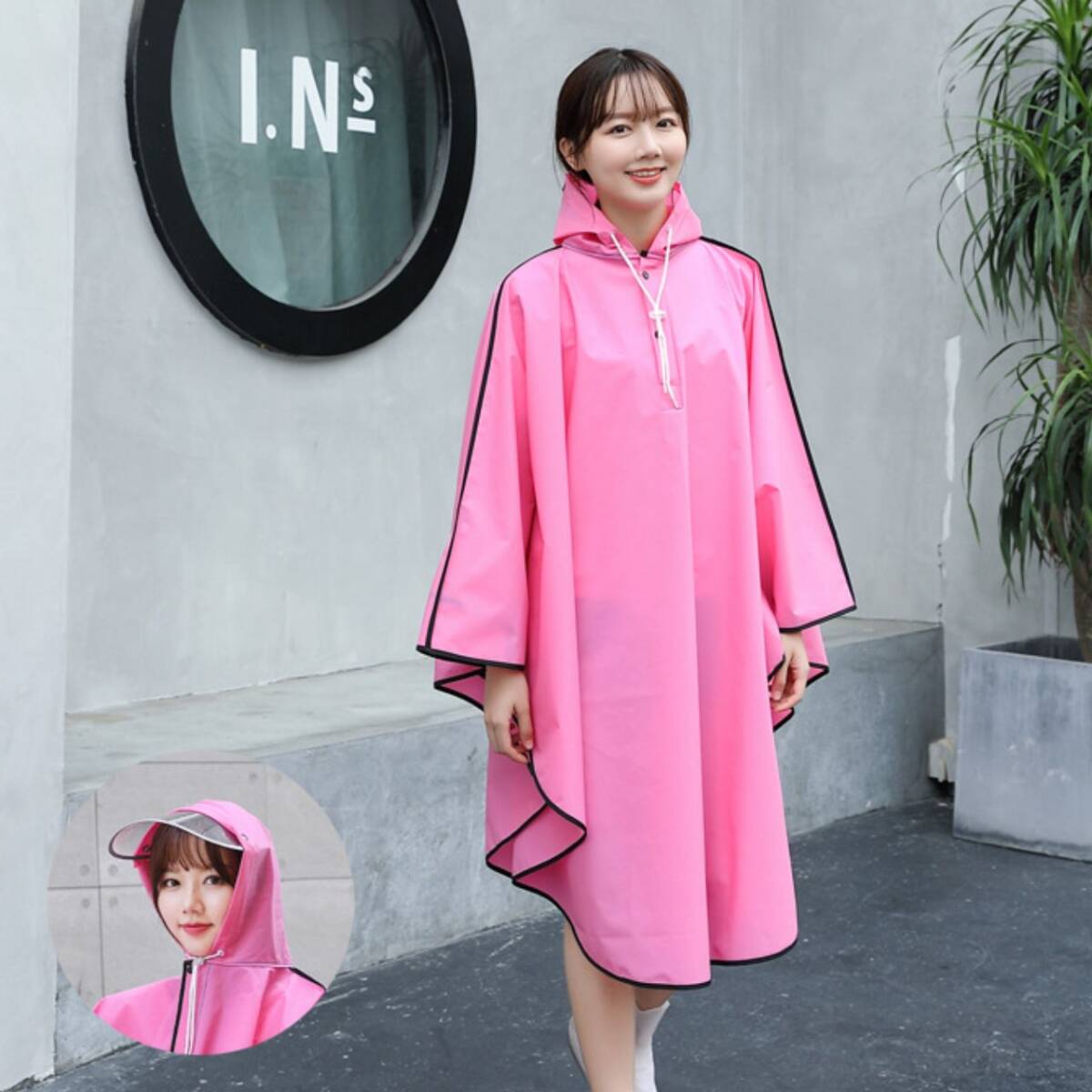 - レインウエア ピンク ポンチョ 二重つば付き リュック対応 サイクリング 防災グッズ 防雨手袋付き 通学 アウトドア つば取り外し可能