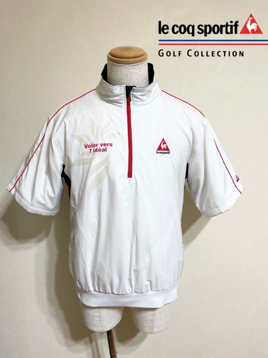 > le coq sportif golf ルコック ゴルフ ウェア ハーフジップ ウインド 中わた ジャケット トップス サイズM 半袖 白黒赤 QG6629 デサント