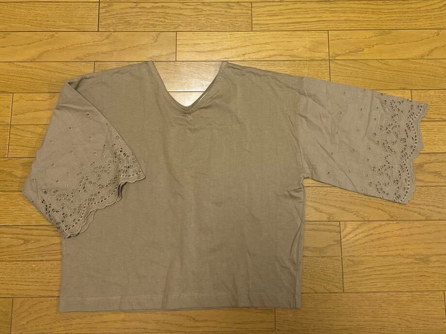 > 送料無料■タグ付■未使用 niko and... ニコアンド ブラウンベージュ スカラレース袖 カットソー トップス シャツ サイズL