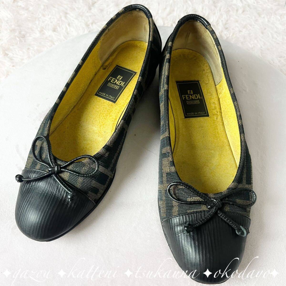 - FENDI フェンディ ズッカ リボン パンプス レザー切り替え 異素材MIX フラットシューズ バレエシューズ 35ハーフ 23.5cm相当
