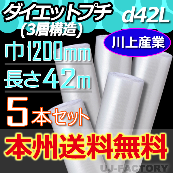 > 【送料無料!/法人様・個人事業主様】★川上産業 3層構造で丈夫!プチプチ・ロール/シート1200mm×42m (d42L) x5本セット