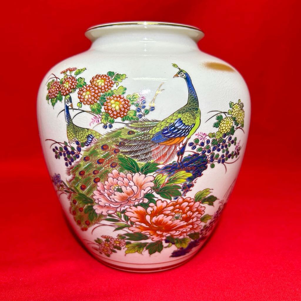 - ☆美品☆ 九谷焼 秋峰 花瓶 花器 花生 壺 陶器 花入 九谷 置物 貫入 小さめ (04206A