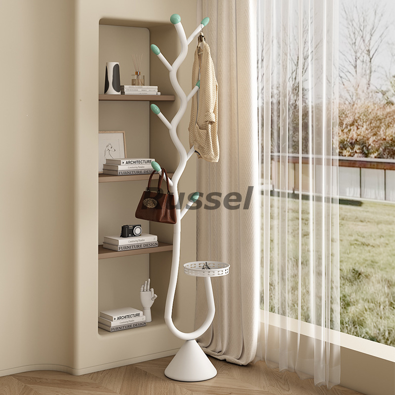 - ハンガー ラック ツリー型 省スペース おしゃれ かわいい インテリア 衣類 コート ハンガー スリム コンパクト 白 ホワイト ゴールド