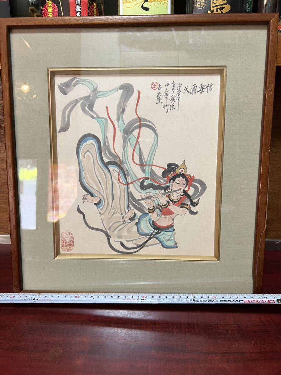 - 肉筆紙本 額装 絵画 作者王占鰲伎楽飛天