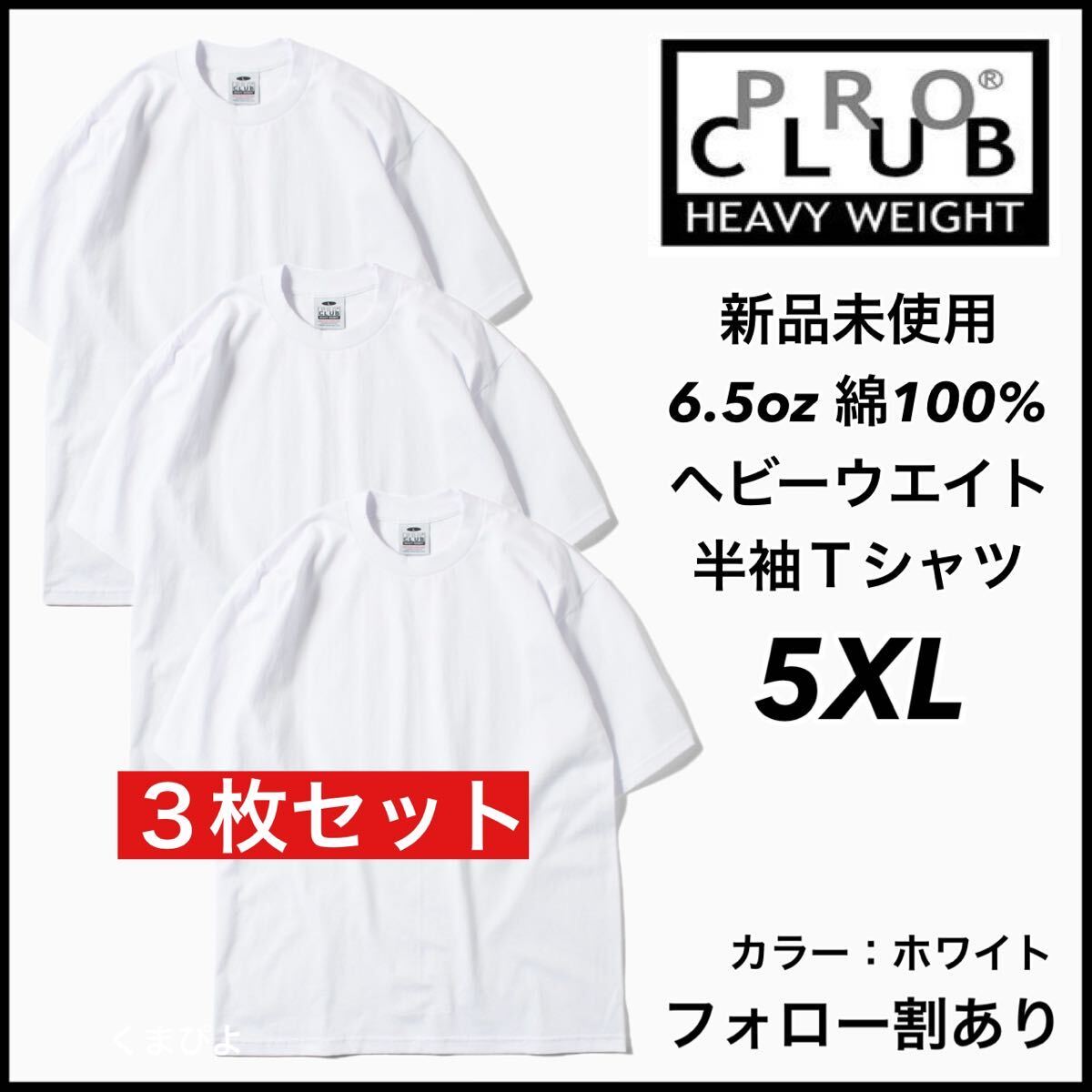 - 新品 プロクラブ 6.5oz ヘビーウエイト 無地 半袖Tシャツ 白3枚 5XLサイズ PRO CLUB