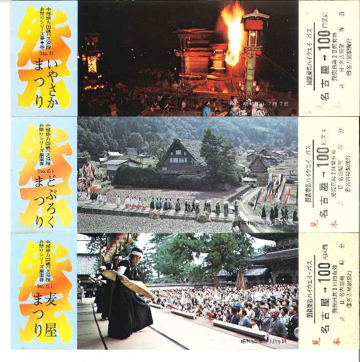 - 切符 見本 国鉄東名ハイウエイバス 東海道五十三次シリーズ乗車券 お祭りシリーズ乗車券 k-4