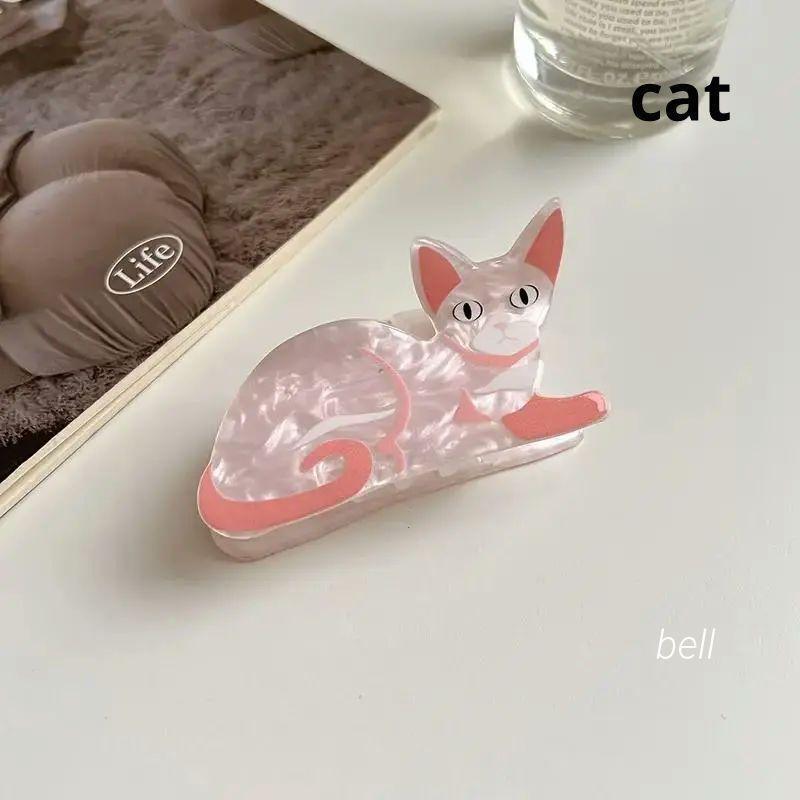 - ピンク バレッタ ヘアクリップ 猫 動物 髪留め バンスクリップ 可愛い 犬 韓国