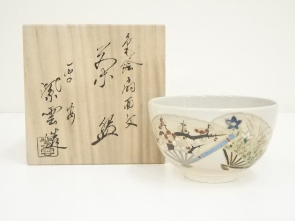 - ys7043443; 京焼 橋本紫雲造 色絵扇面文茶碗(共箱)【道】