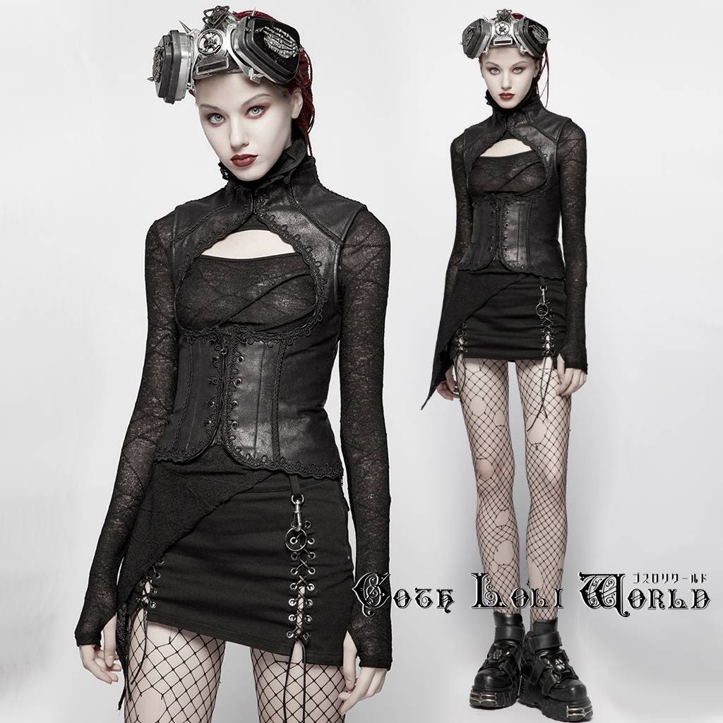 > WY-960MJF-BK-L フロントスペードフェイクレザー風 ベスト ゴスロリワールド ゴシック パンク ロック ロリィタ ビジュアル系 V系