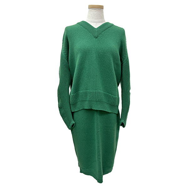 - エルメス ニット セーター スカート セットアップ レディース 36 38 カシミヤ グリーン 1979