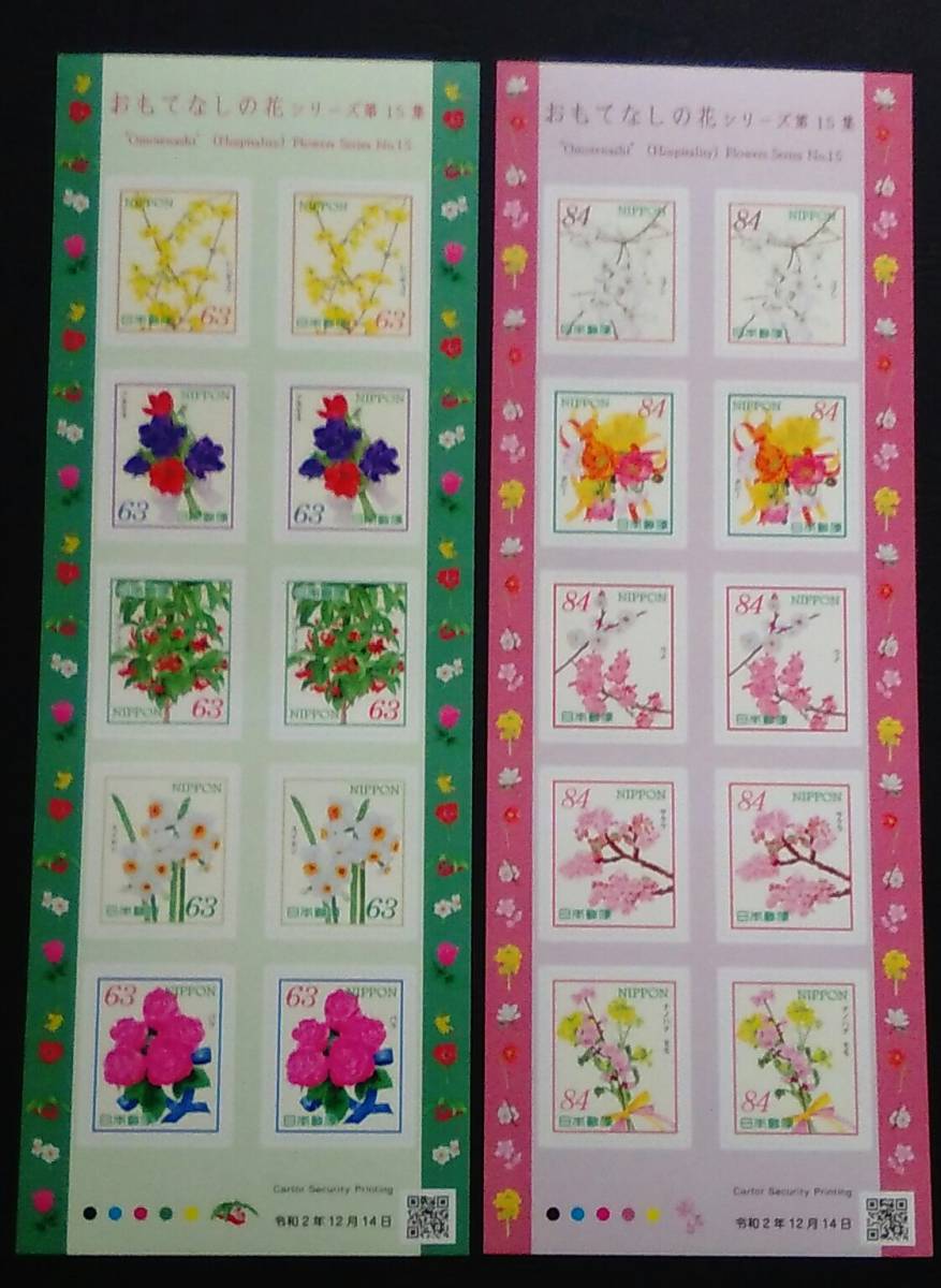 - 2020年・記念切手-おもてなしの花シリーズ第15集(2種類)シート