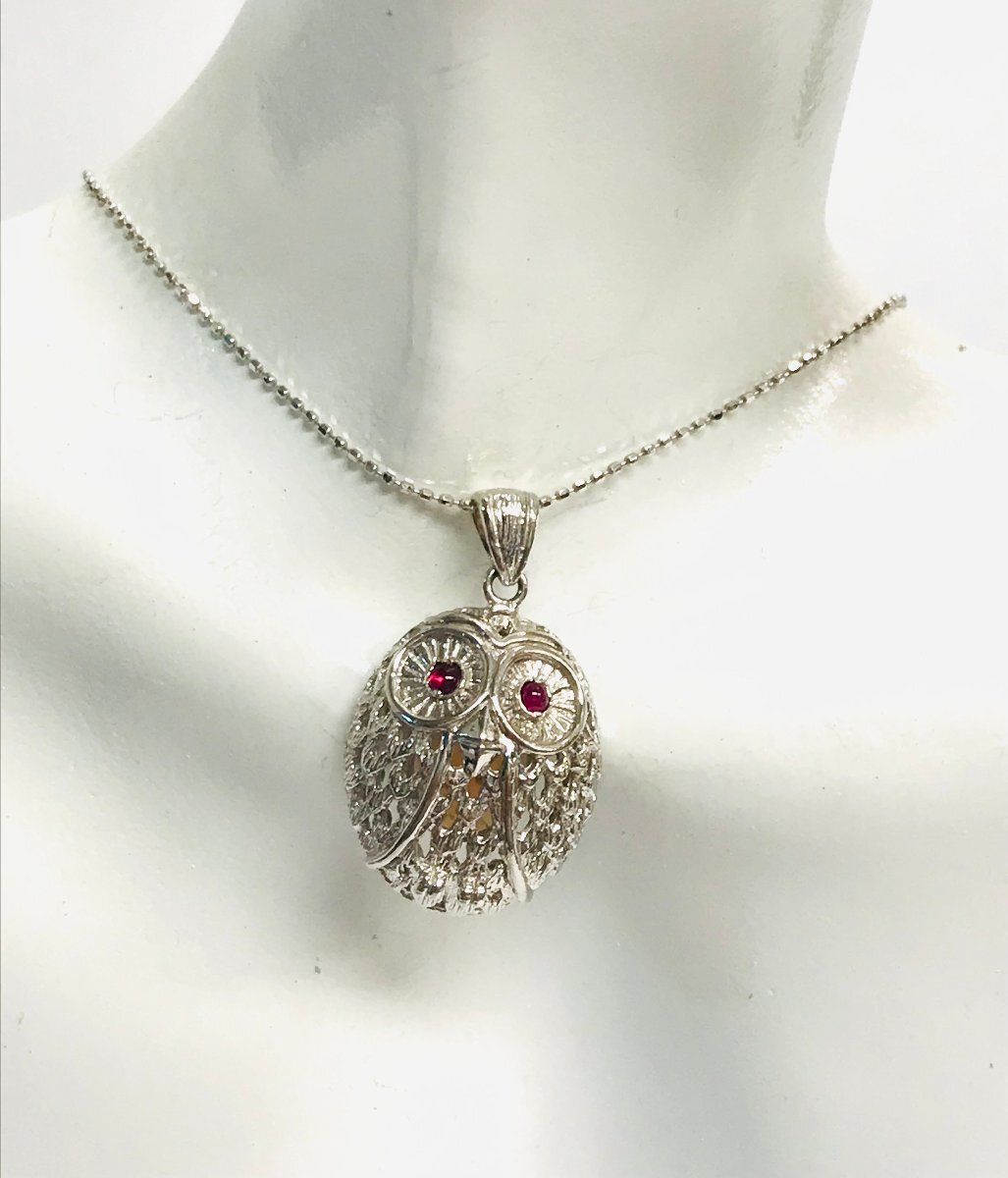 - qoj.Z4804 K18WG ホワイトゴールド 天然オパール1.41 天然ルビー0.10 フクロウモチーフ ネックレス ソーティング付き