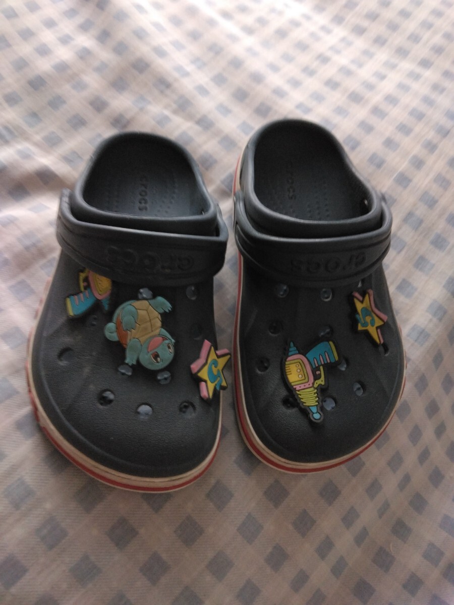 - 正規品 クロックス crocs サンダル 子供靴 こども キッズ 18センチ 中古 かかと擦れあり 人気ポケモン ゼニガメ付き