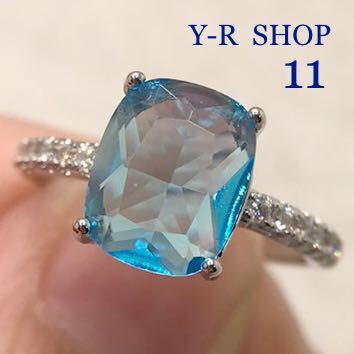 - 処分価格★11号★ブルートパーズとホワイトトパーズのエレガントリング★レディース指輪シルバーアクセサリーカラーストーン新品宝石Y-R