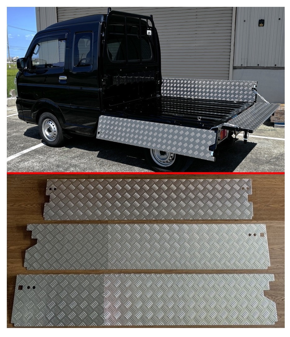 - ■軽トラ スーパーキャリィ DA16T(ゲートチェーン装着車用) 荷台あおりインナーカバー アルミ縞板 3点SET