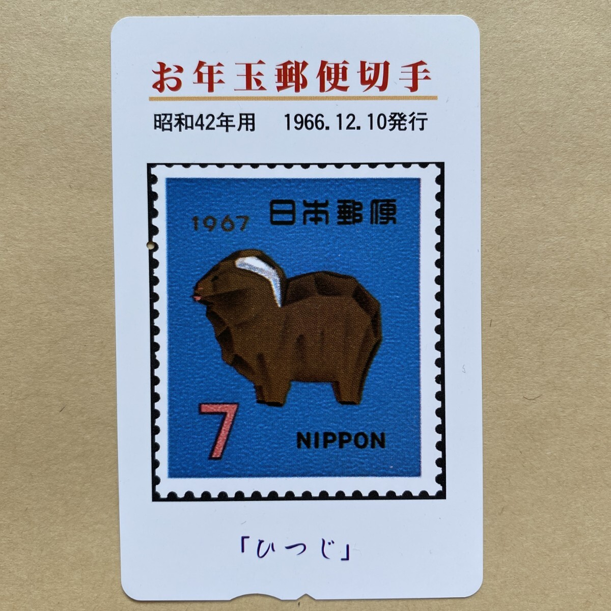 - 【使用済】 ふみカード 北陸版 お年玉郵便切手 昭和42年用 1966.12.10発行 「ひつじ」