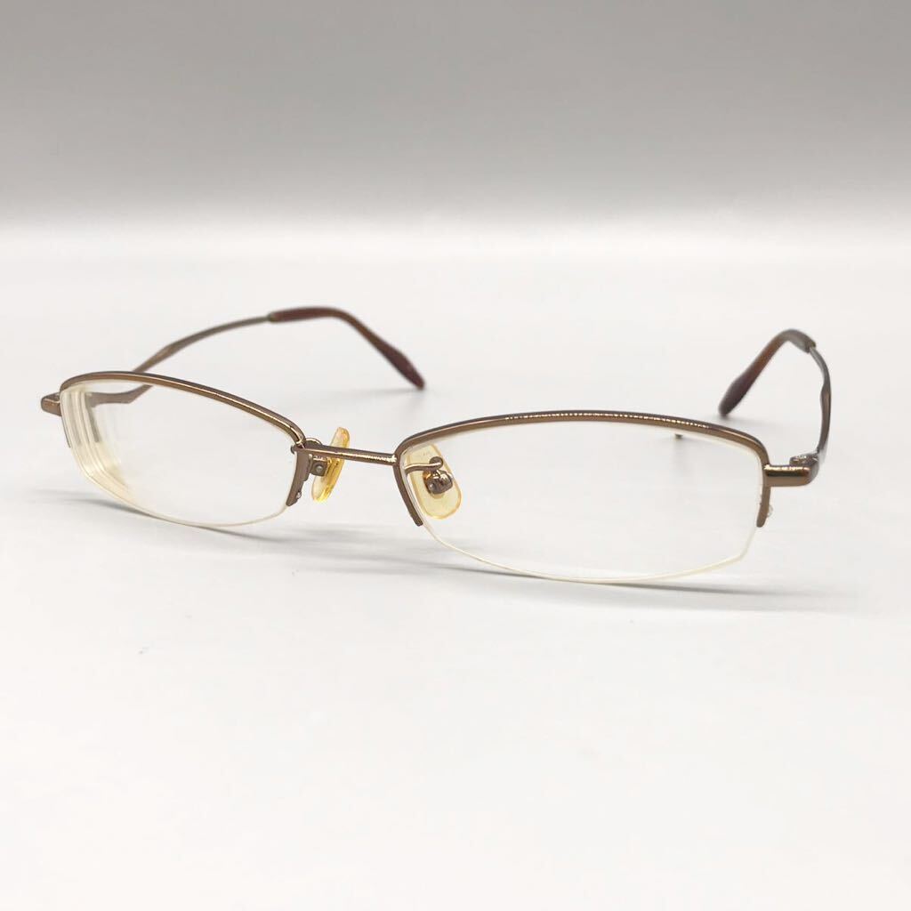 - [送料全国一律360円] スクエア メガネ 眼鏡 めがね メタル フレーム ハーフリム レンズ 度入り アイウェア ブラウン ゴールド 52□18-140