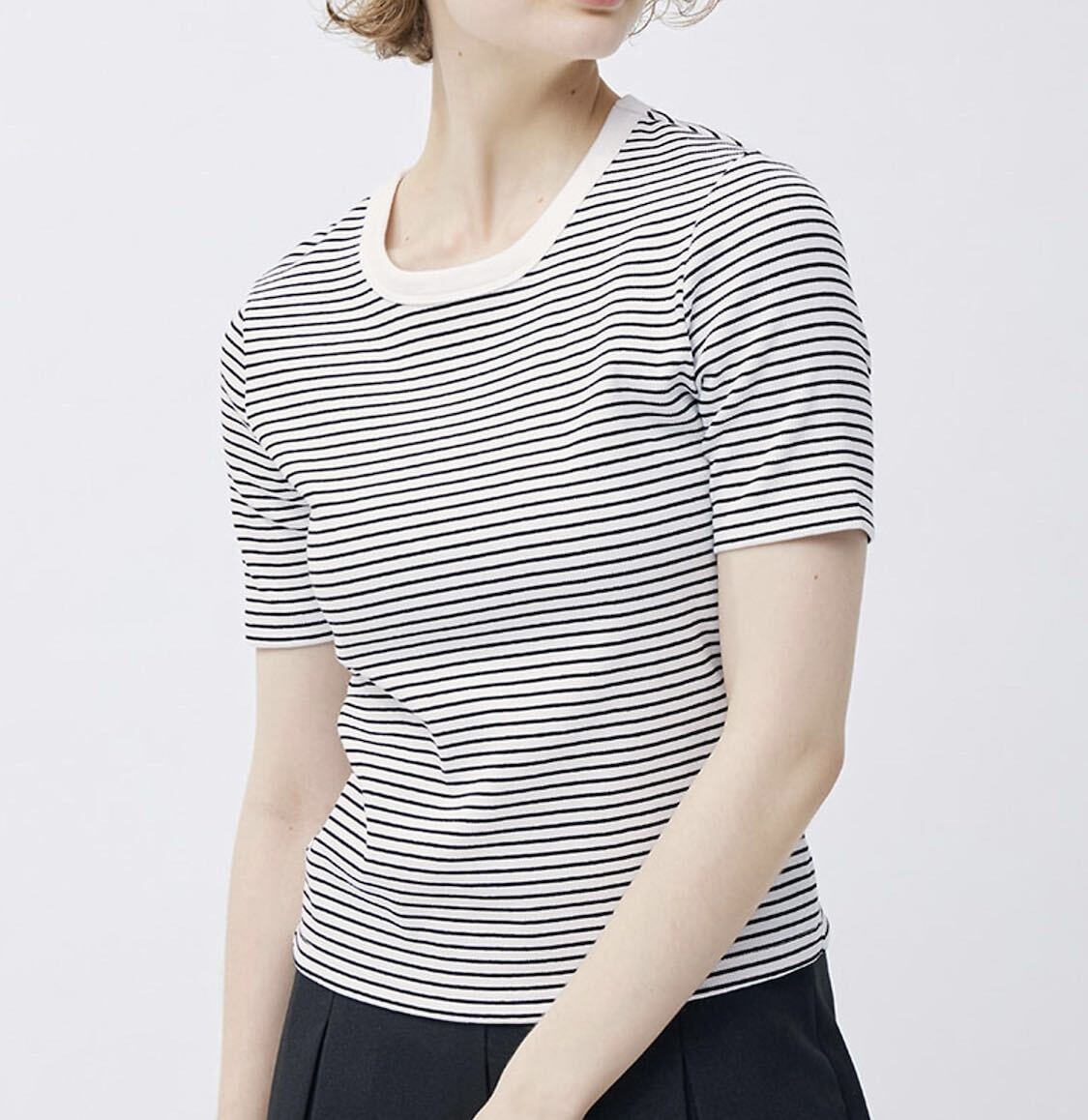 - GU リブT(半袖)ボーダー オフホワイト 白 Mサイズ