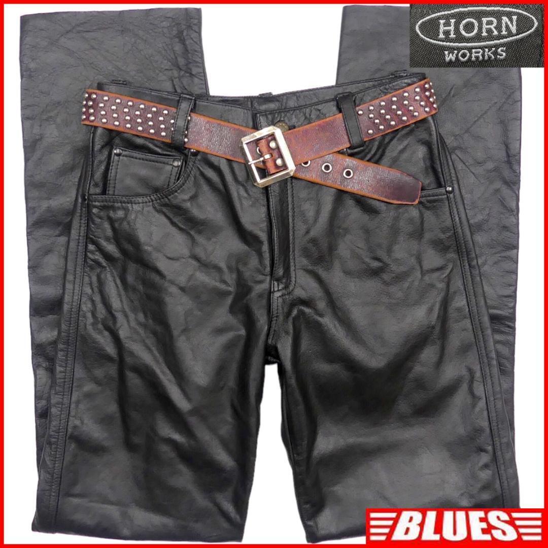 > 即決★HORN WORKS★W32 レザーパンツ ホーンワークス メンズ 黒 ブラック 本革 ライダースパンツ 皮 パンクロック ライディング ツーリング