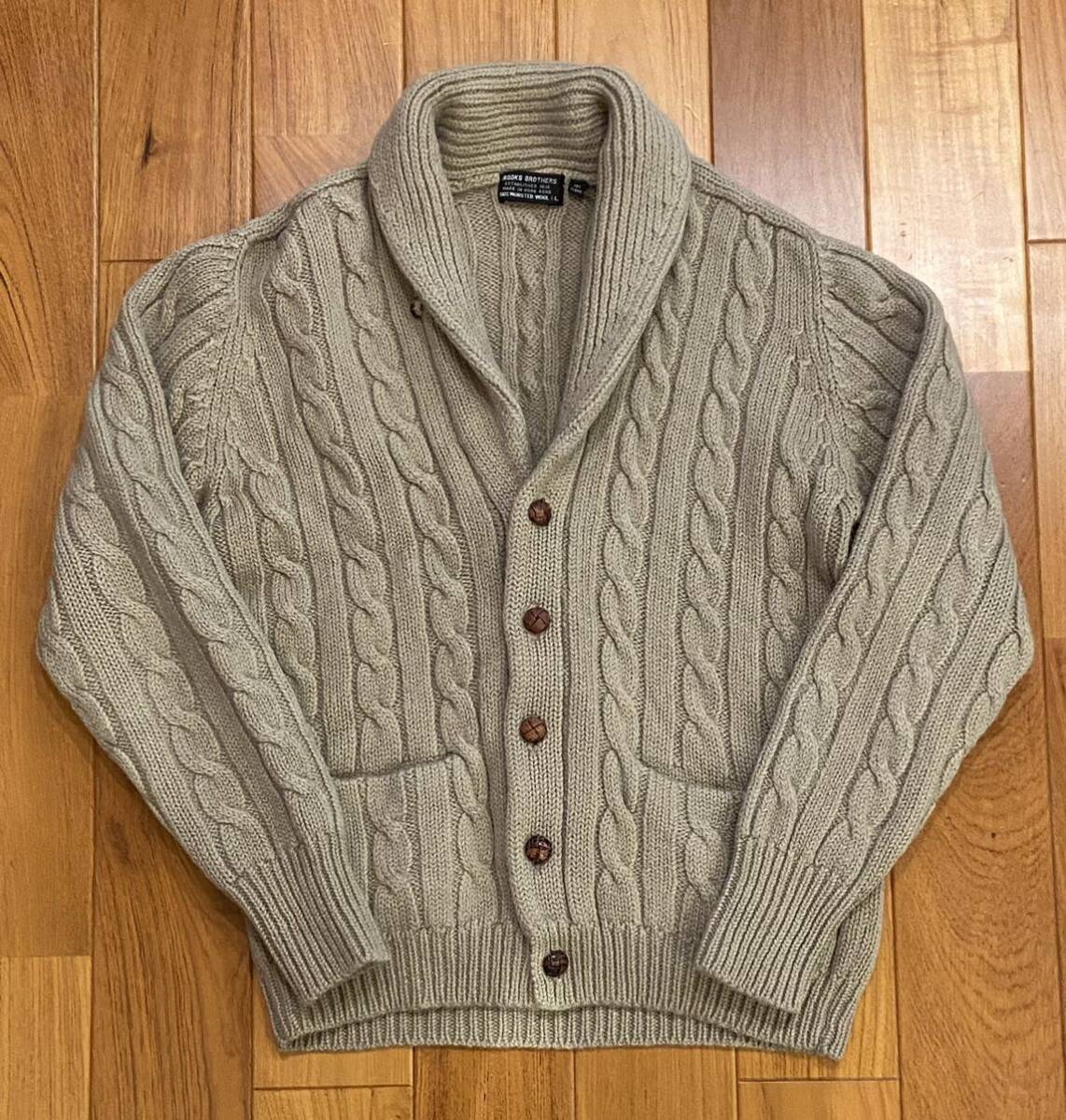 - ミント ビンテージ 黒タグ ブルックスブラザーズ ショールカラーカーディガン L 香港製 ケーブル編み ヴィンテージ