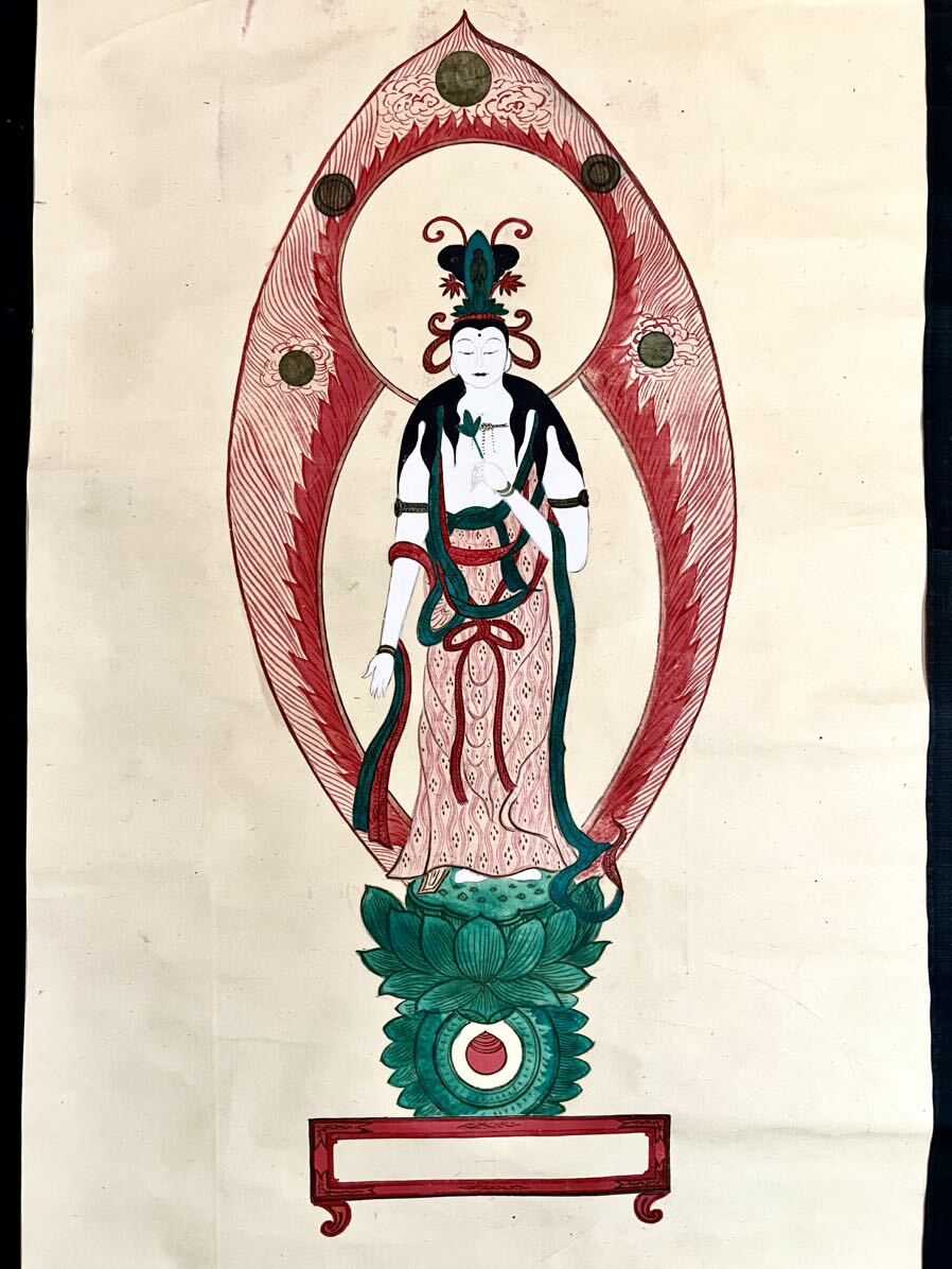 - 【模写】【S8】無銘無落款「観音菩薩像」紙本 金泥 仏画 仏教美術 絵画 掛軸 中国美術 朝鮮美術