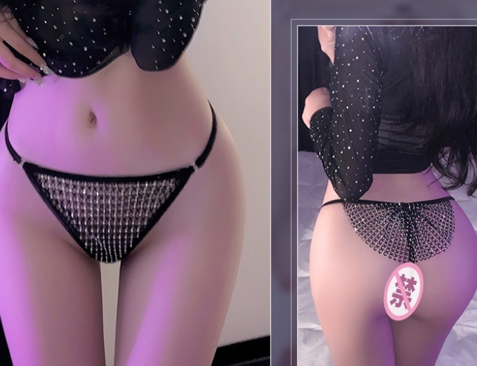 - 新品 セクシー下着 ピカピカ シースルー 透かし レディースショーツ Tバック 伸縮性あり フリーサイズ 黒