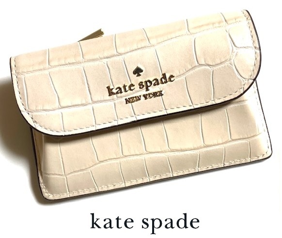 - 特価! 可愛い kate spade new york ケイトスペード クロコ型押し レザー フラップ カードケース ベア(薄いベージュ系) KE627 新品本物