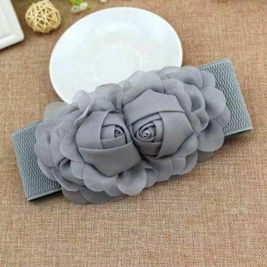 - 【グレー色】レディースゴムベルト フラワー 花 カラー おしゃれ