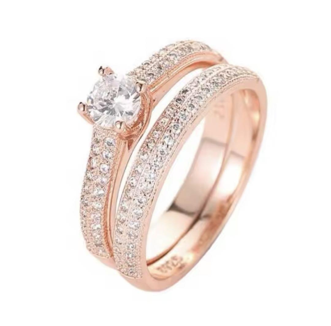 - 6222★新品未使用★レディース 2点セット ローズゴールド リング s925 刻印有 czダイヤモンド 指輪 ピンク ジュエリー アクセサリー 女性