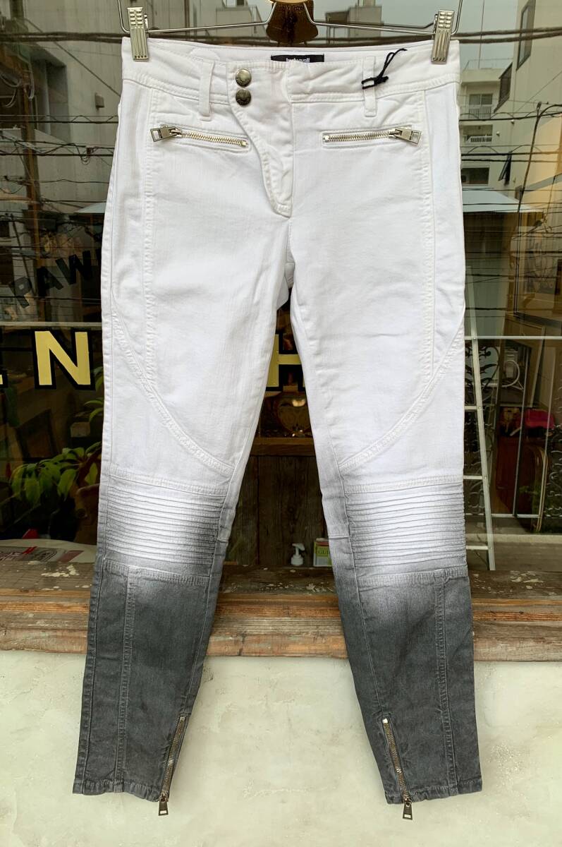 ★未使用★JUST CAVALLI★ジャストカヴァリ★カヴァッリ★バイカージーンズ★デニム★ホワイト★グレー★レディース★サイズ25★