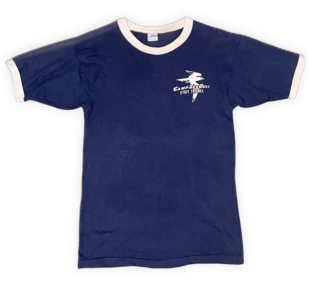 - 70’s 米国製 MADE IN USA バータグ チャンピオン Champion ビンテージ Tシャツ CAMP SEAGULL トリム リンガー ネイビー M [ta-1178]