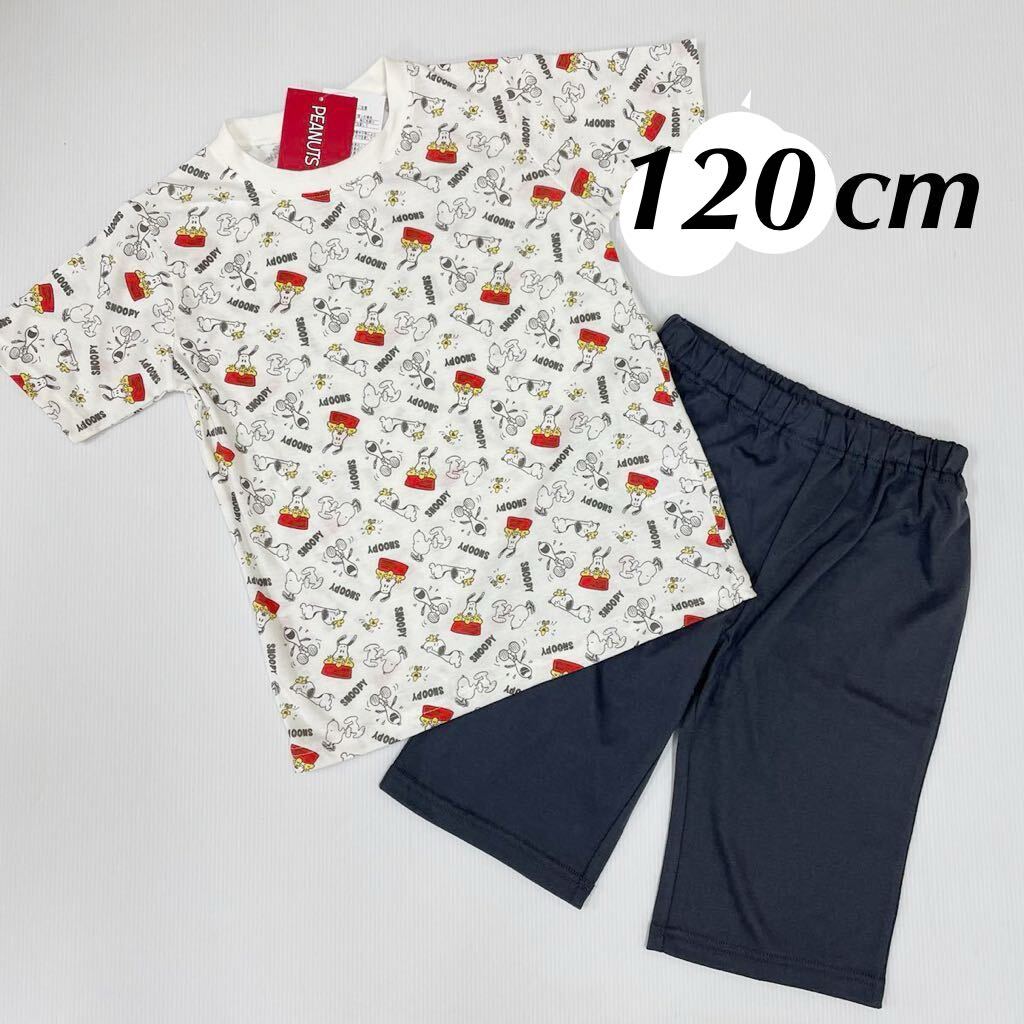 - 新品62995 スヌーピー 120cm 白総柄プリント 半袖パジャマ 上下セット 女の子 男の子ジュニア 上下セットハーフパンツサンリオ