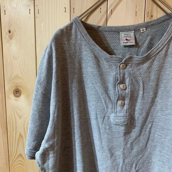 - [KWT2005] AVIREX 半袖ワッフルTシャツ メンズ グレー L ポス