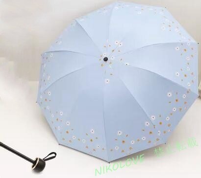 - 新品晴雨兼用 折りたたみ傘 夏 10本骨 3つ折り 雨傘 日傘 UVカット 遮光遮熱 日焼け防止 日よけ 108cm 雛菊柄 ブルー色 LJ874