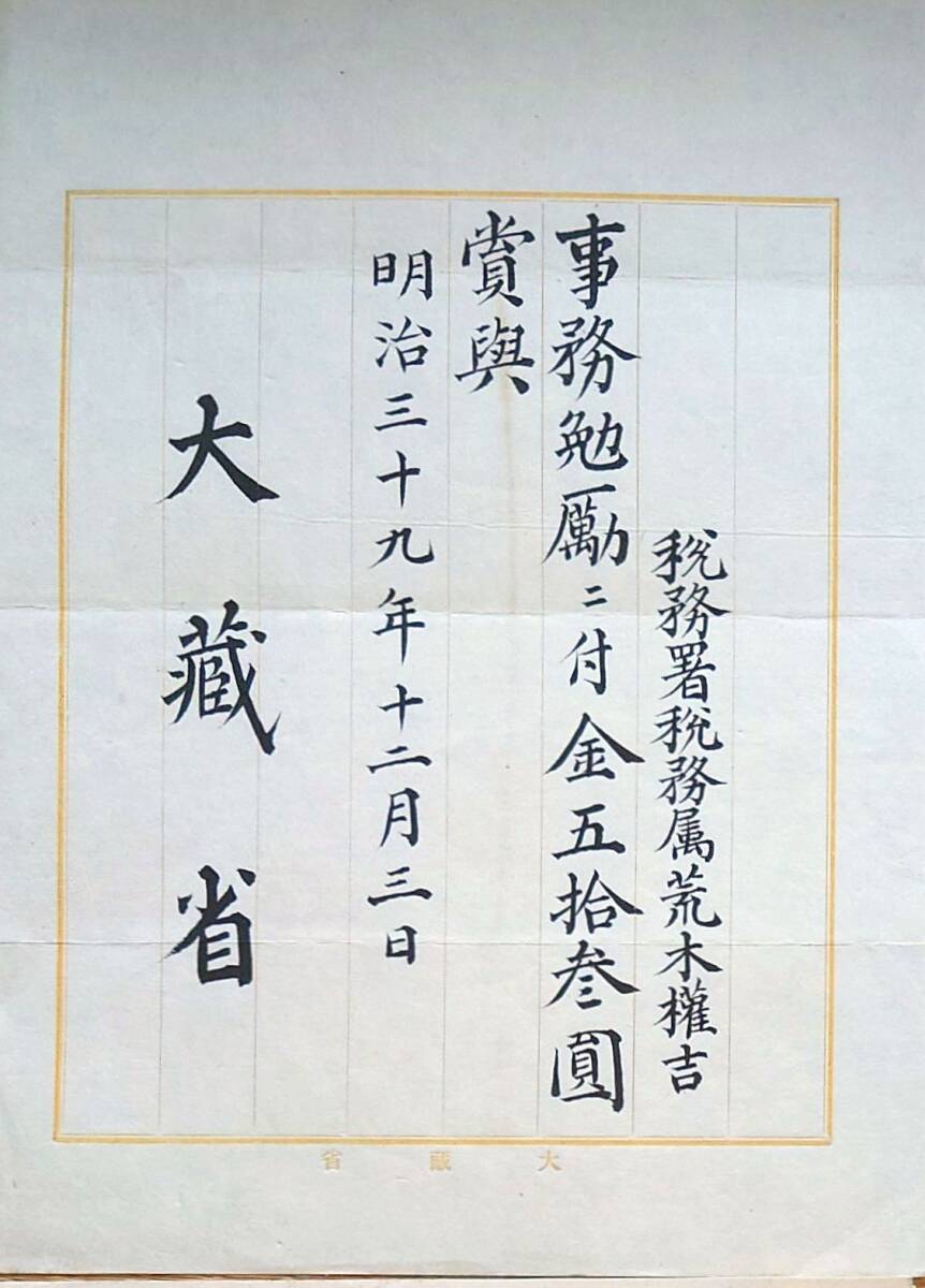 - f24090674〇官庁辞令書 大蔵省 税務署 明治39年〇和本古書古文書