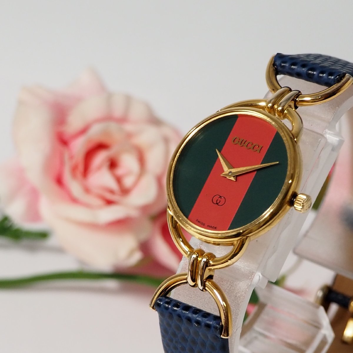 ★★★★ グッチ GUCCI シェリーライン文字盤 新品革ベルト レディース 腕時計 ゴールド 中古 C955★★★★