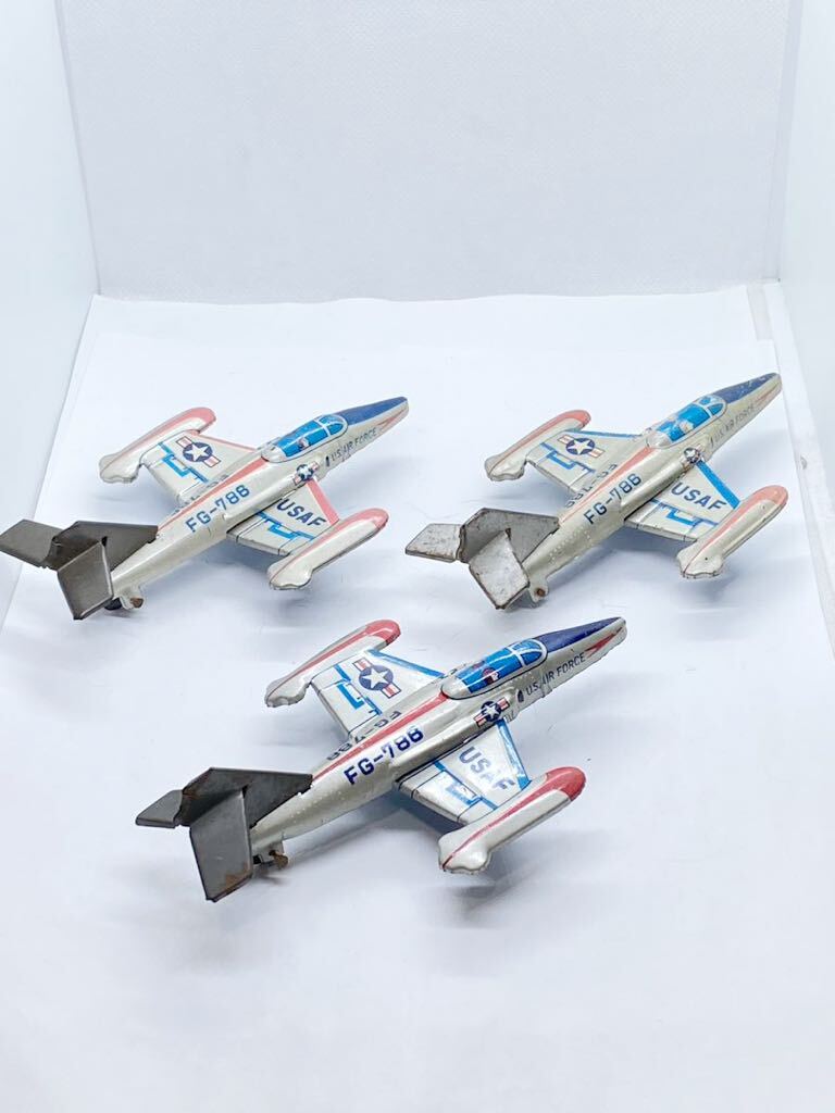 - 昭和 レトロ 当時物 駄菓子 おもちゃ ブリキ 戦闘機 FG-788 3機