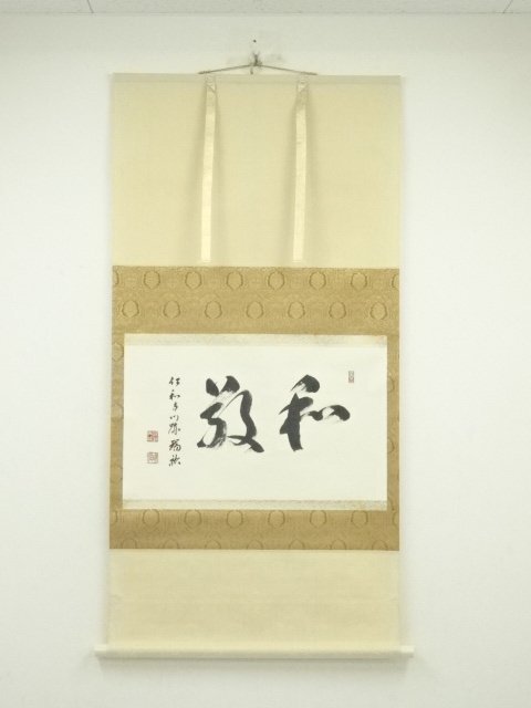 - ys7120621; 宗sou 仁和寺 立部瑞祐筆 「和敬」横物 肉筆紙本掛軸(共箱)【道】