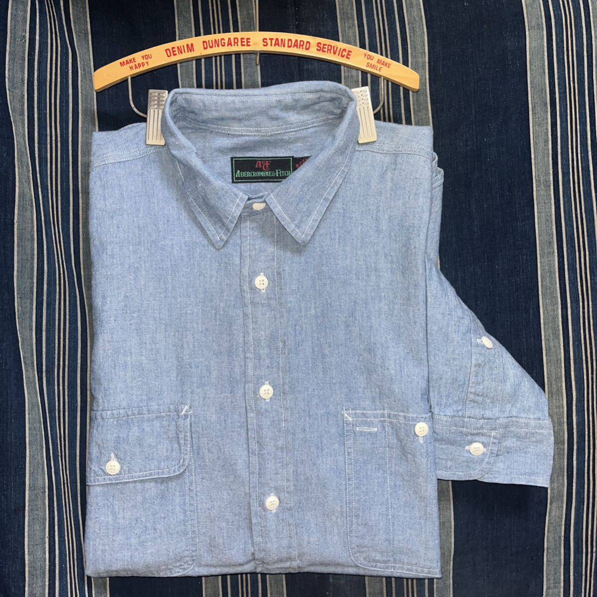 > 80s 90s abercrombie & fitch chmabray shirt 黒タグ 80年代 90年代 シャンブレーシャツ トリプルステッチ ガチャポケ 非対称 旧タグ
