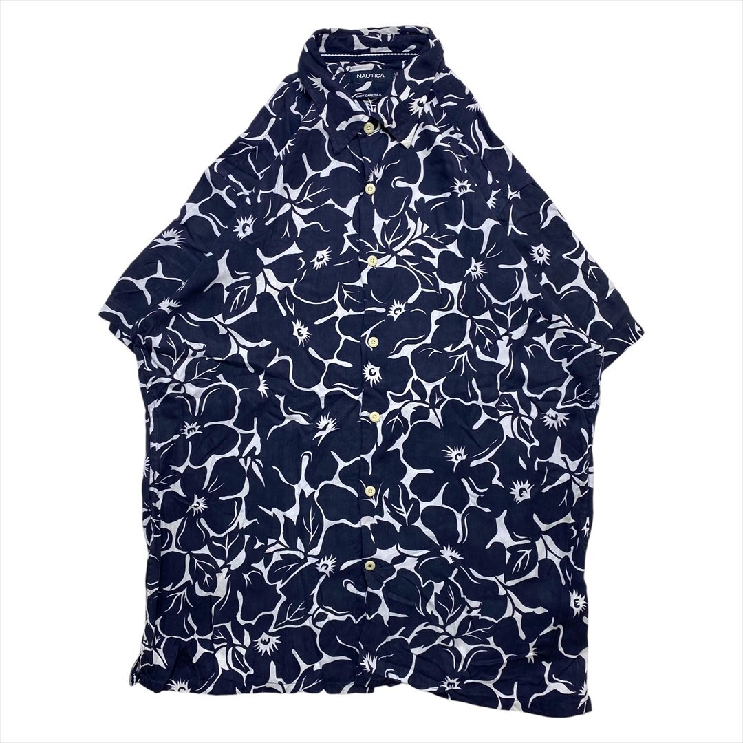 > ノーティカ アロハシャツ シャツ 半袖 柄物 NAUTICA 古着 メンズ L ハイビスカス ハワイアン 海 夏 クリーニング済み