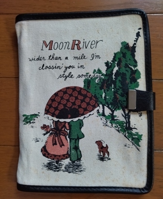 - 昭和レトロ Moon River ムーンリバー 男の人 女の人 犬 散歩 UNIC SEKISEI ブックカバー 布製 レトロポップ ファンシー雑貨