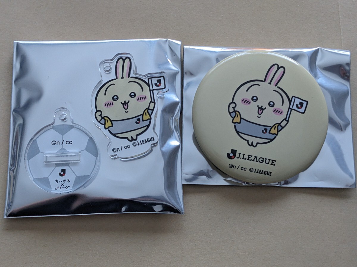 - ちいかわ jリーグ サッカー コラボ うさぎ キーホルダーにもなるアクリルスタンド 缶バッジ