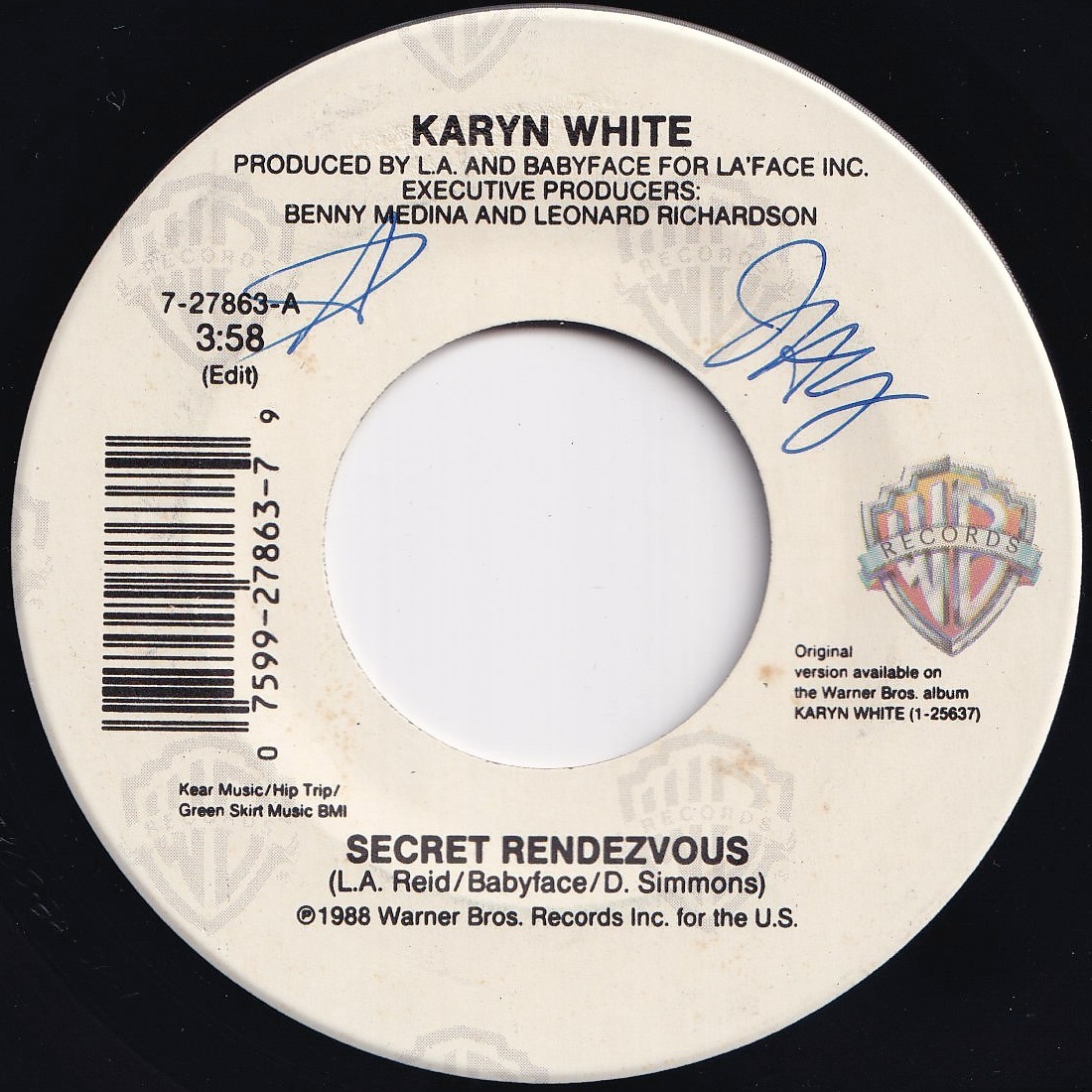 > Karyn White Secret Rendezvous (Edit) / Tell Me Tomorrow Warner Bros. US 7-27863 207669 HIP HOP R&B レコード 7インチ 45