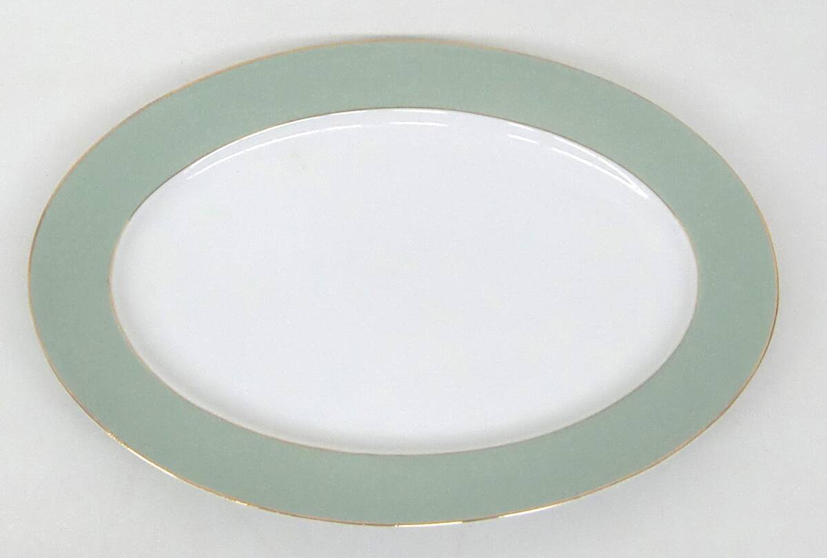 - *伝統工芸 工芸品 工芸美術 *SONE CHINA ソネチャイナ *大皿 長皿 楕円 プレート *グリーン ホワイト系 *元箱付き 古物 古美術 古道具